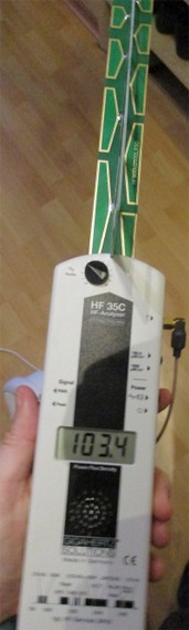 Wie man sieht werden Spitzenwerte von 103.4 µW/m² gemessen. Die WLAN Basisstation sendet gepulste HF-