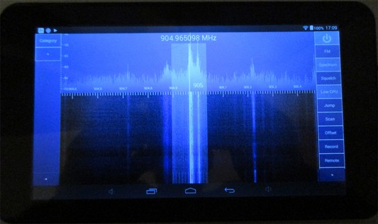 Anbei ein Messbeispiel einer WLAN Basisstation (Standard WLAN Modem der Telekom) im Abstand von 200 cm zur Basisstation und ein Spektrum einer GSM-